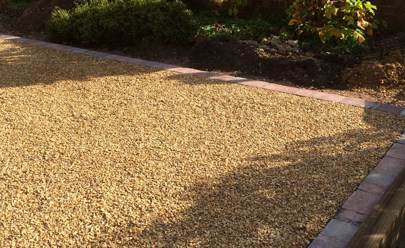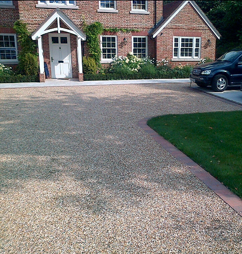Gravel and Decorative Stone areas edged with standard edgings, block paved edgings, granite edgings or a resin bound perimeter path leading from a paved, tarmac, resin bound entrance, designs to suit all styles of property.